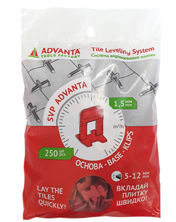 Количество в упаковке.250 шт Материал.Пластик Назначение.Для облегчения процесса укладки плитки и сокращения времени выполнения работ