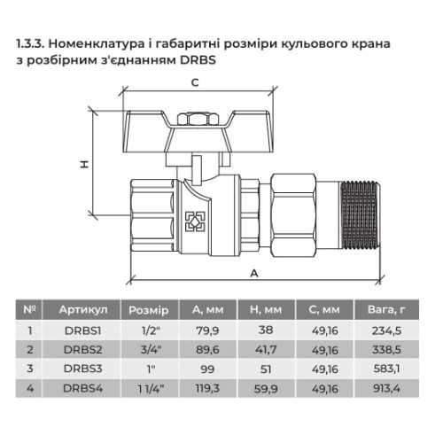 Кран шаровой DN15 PN50 с разборным соединением DRBS1
