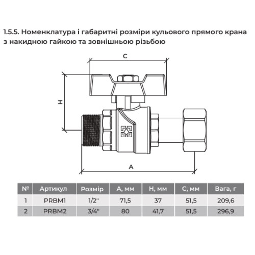 Кран шаровой DN15 PN50 с разборным соединением PRBM1